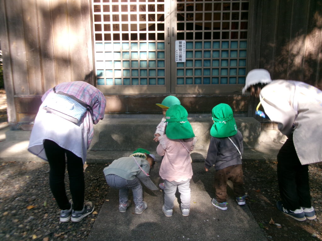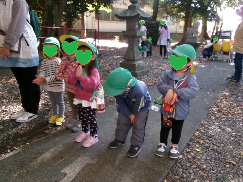 11月に入り、周りの木々は、すっかりと秋の色なり、四季の移り変わりを感じる日々が続いていますね。日曜日の七五三のお参りを兼ねて、13日(金)保育園のみんなで神社にお参りに行って来ました。