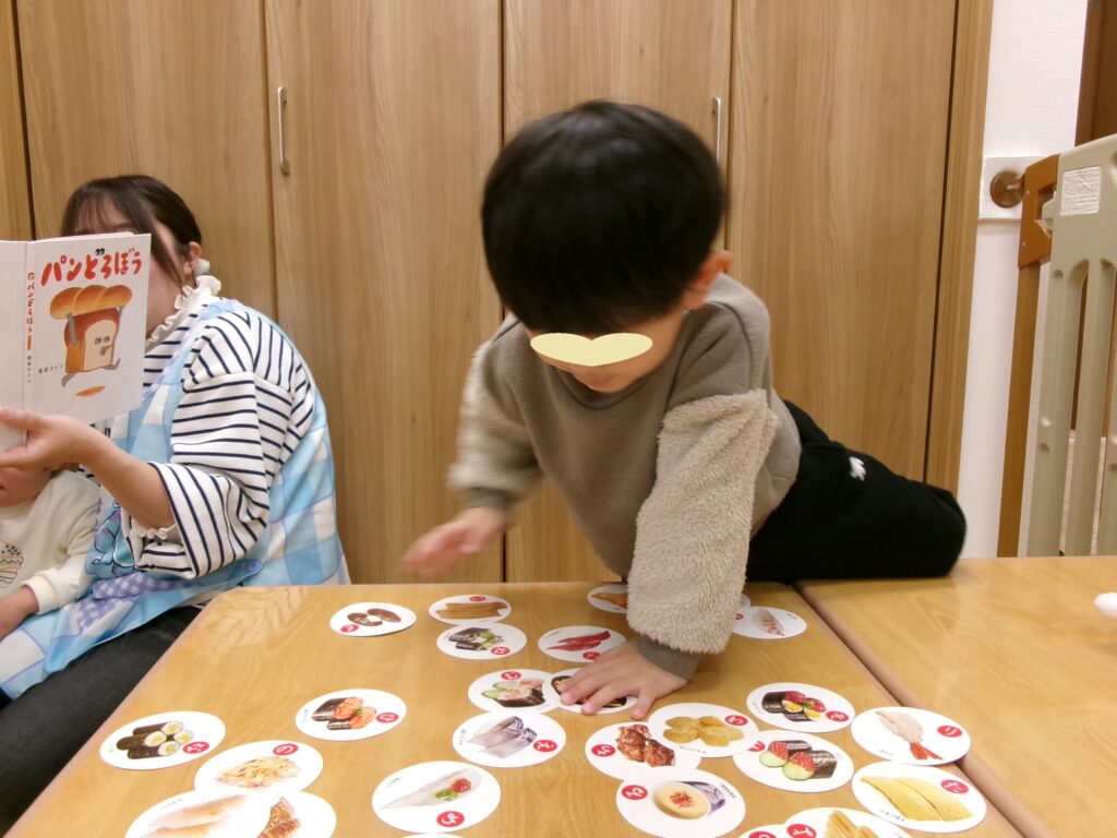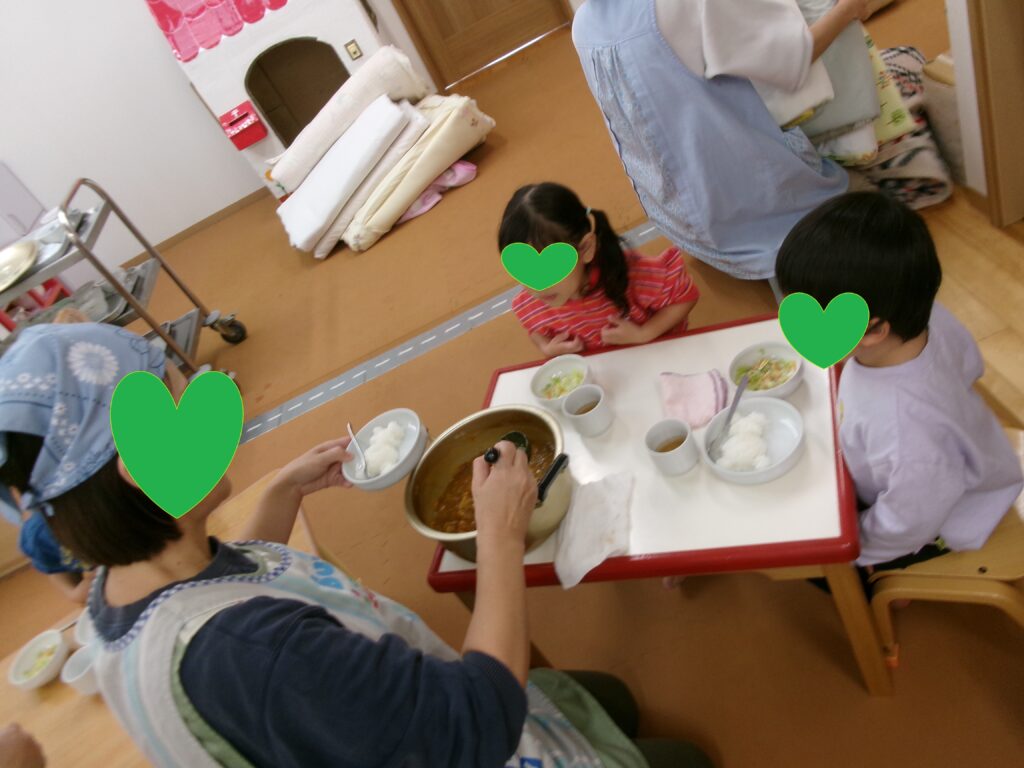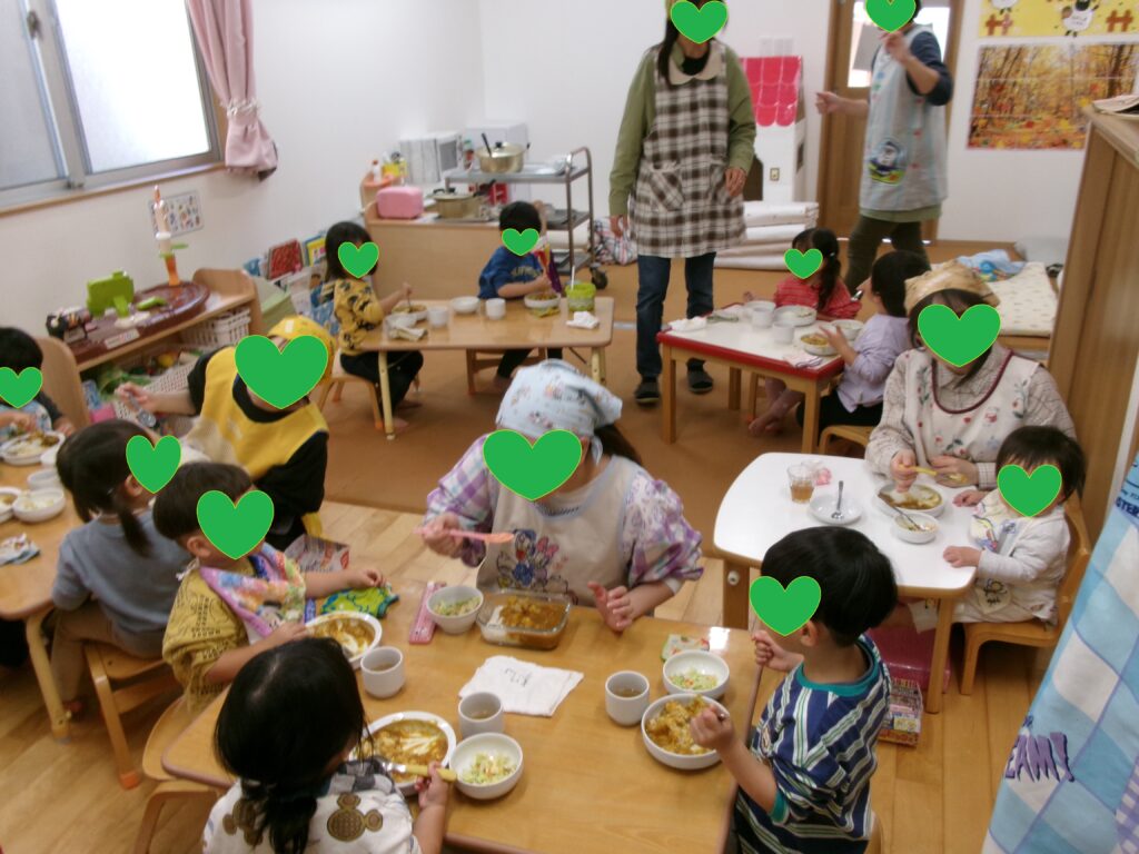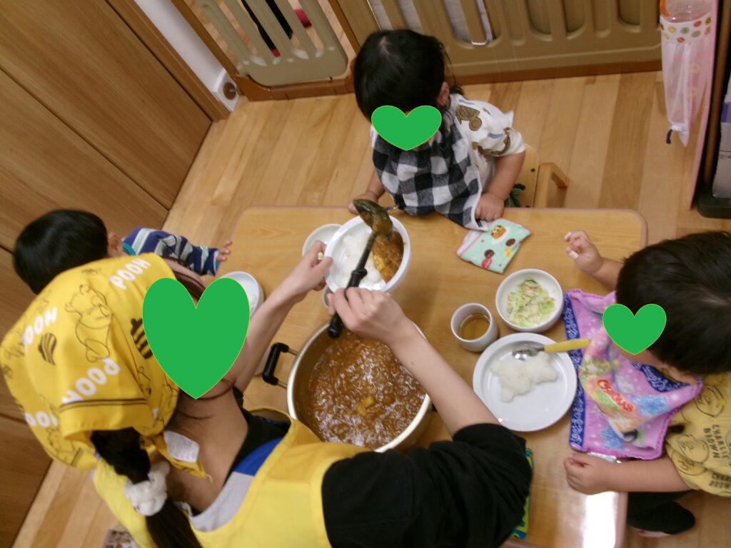 - 10:30 昼食(離乳食)※一人ずつ、または数人で順番に食事します。