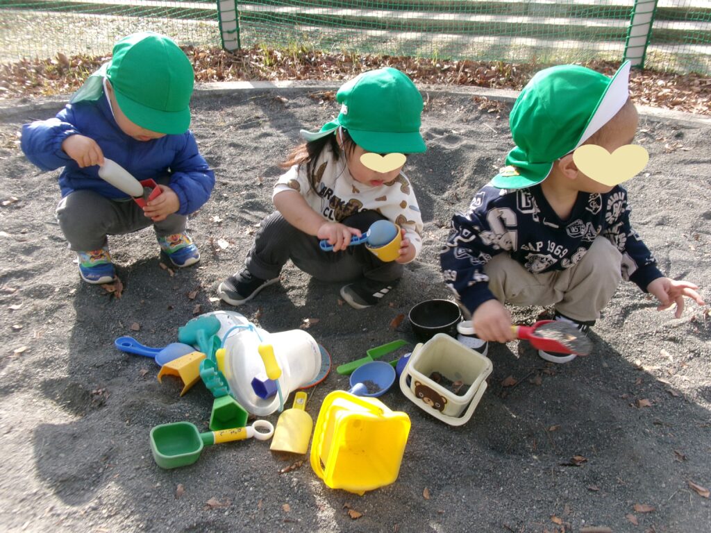 大好きなお砂場遊び「カップに上手に入れられるようになりました」