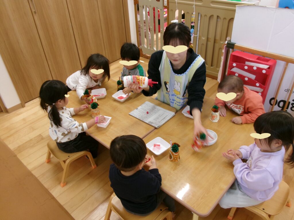 先日2歳児メロン組の巣立ちの日を行いました。感染症対策を取りながら短い時間でしたが、親子でマグネット制作を行い、子ども達はとてもうれしそうに制作を行っていました。
